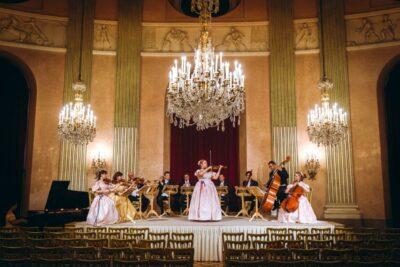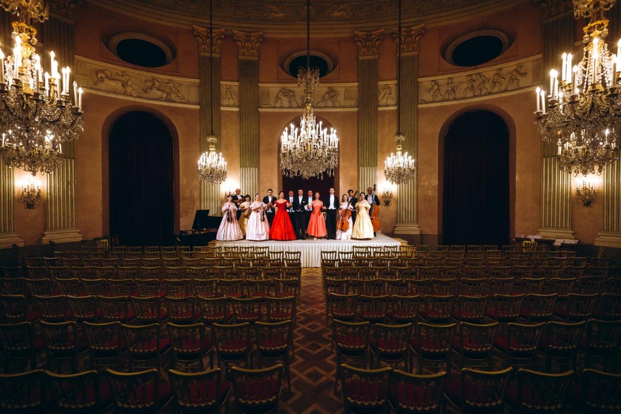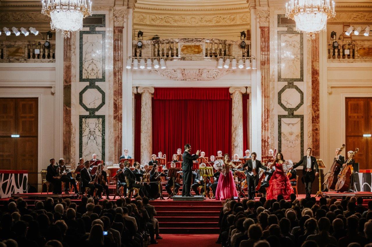 Das Wiener Hofburgorchester spielt in Wien Konzerte mit den schönsten und beliebtesten Kompositionen vom König der Walzer, Johann Strauss und Arien und Duette aus W. A. Mozarts Opern.